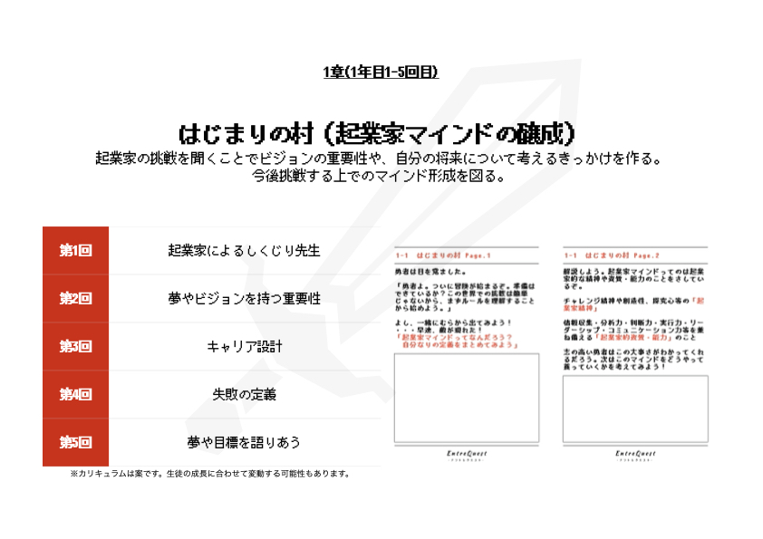 ヒヤリングの内容をもとに、アントレプレナーシップ教育の導入案をご提案します。