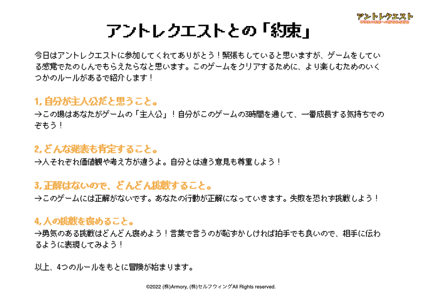 体感的に楽しさを感じるゲーミフィケーションの推進のために、8章あるクエストをクリアしていく。バッジ制度や役職カード、擬似マネーなどRPGのゲーム感覚で体験することができる。
